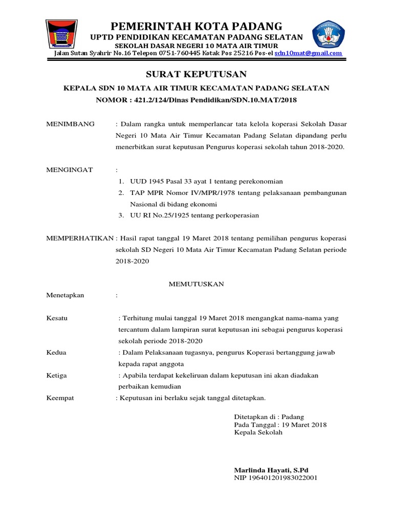Uud 1945 pasal 33 ayat 1 tentang asas perekonomian. Balai besar hidup sejahtera. Pembentukan pengurus koperasi serba usaha smkn i sajingan besar susunan pengurus koperasi serba usaha smk negeri i sajingan besar periode 2010 2012 penanggung jawab. 4215 572008 tanggal. 15 contoh surat keputusan yang baik dan paling lengkap dalam suatu instansi perusahaan lembaga organisasi maupun beberapa kelompok lainnya tentu akan pernah menggunakan salah satu contoh surat yang satu ini yakni surat keputusan. Lampiran sk no.