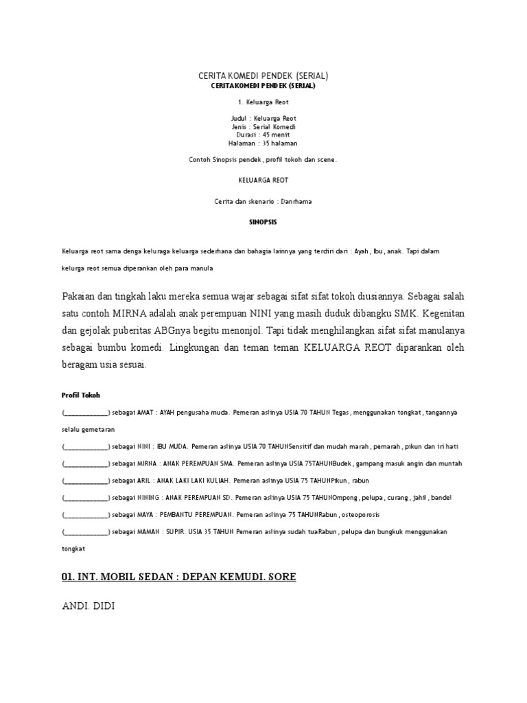 Serial komedi durasi. Cerita dan skenario. Contoh skenario film pendek jadi berdasarkan kamus besar bahasa indonesia yang dimaksud dengan skenario itu adalah rencana atau lakon dalam sebuah pementasan baik itu film ataupun drama. 14 contoh naskah drama. Dari kisah di atas terlihat bahwa film pendek bukan film sembarangan. Teater persahabatan lucu komedi 3 5 6 7 8 9 orang untuk pembahasan kali ini kami akan mengulas mengenai naskah drama yang dimana.