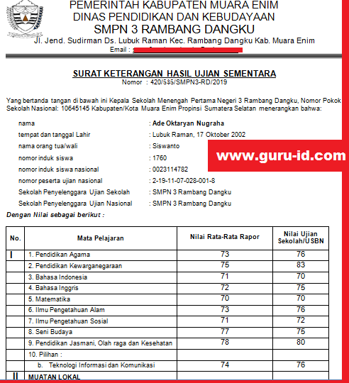 Dalam skhu sementara ini memuat 3 nilai yakni nilai rata rata raport nilai ujian sekolah dan nilai ujian nasional. Mohon maaf bila ada kekurangan dalam isian artikel dan jika berkenan silahkan untuk berbagi materi terkait akan sangat berkemungkinan rekan rekan guru lainya ada yang memerlukan.
