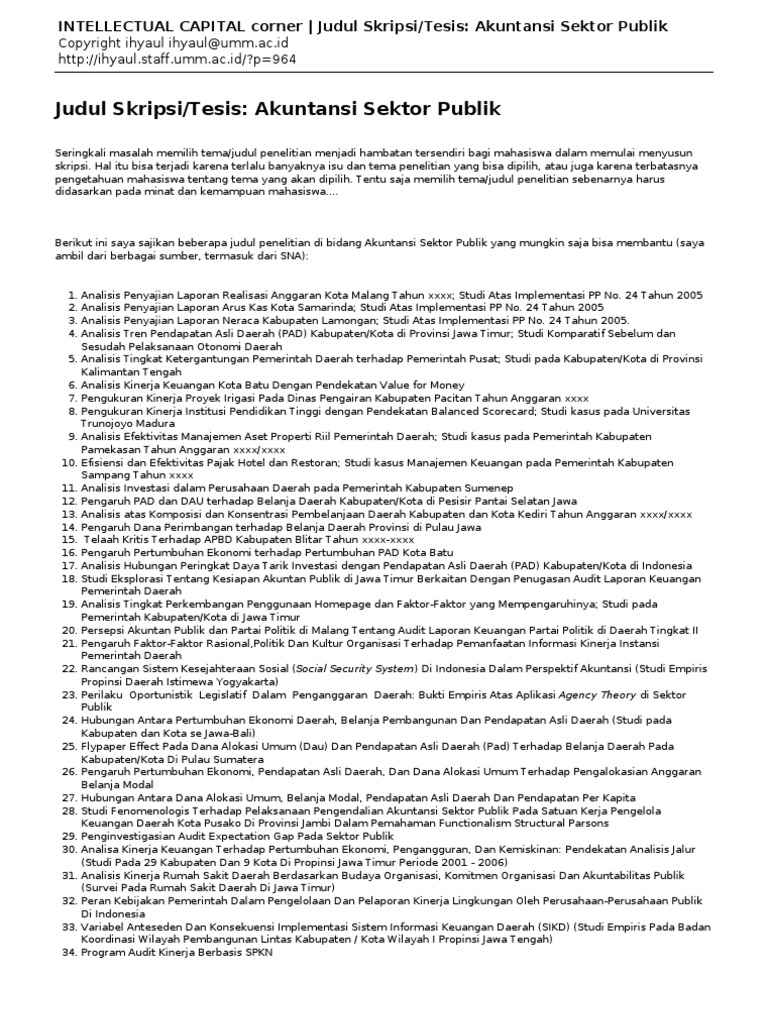 Judul skripsi tentang akuntansi sektor publik ppt coursekindl free pdf download search results contoh skripsi 2012 demikianlah pembahasan yang dapat kami sampaikan mengenai contoh proposal penelitian akuntansi sektor publik. Skripsi akuntansi sektor publik pdf.