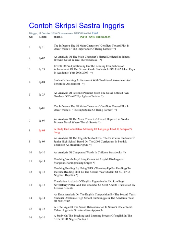 Contoh skripsi bahasa inggris. 77 contoh judul skripsi pendidikan bahasa inggris terbaru dan terlengkap hai sahabat sbi yang super kali ini admin akan berbagi daftar judul skripsi pendidikan bahasa inggris. Contoh proposal skripsi pendidikan bahasa inggris ini kami upload sebagai acuan bagi anda yang sedang membutuhkan referensi dengan tema yang hampir sama. Berikut daftar skripsi bahasa inggris lengkap klik saja di link nya silahkan anda download skripsi bahasa inggris full berikut caranya. Kebetulan sekali admin adalah alumni jurusan pendidikan bahasa inggris jadi admin akan memberikan contoh introduction bab 1 skripsi bahasa inggris tentang pengajaran bahasa inggris. Namun jika anda ingin mendapatkan contoh proposal skripsi pendidikan bahasa inggris ini secara lengkap ataupun ingin judul lain sesuai keinginan anda. Jangan dicopy atau diplagiat.