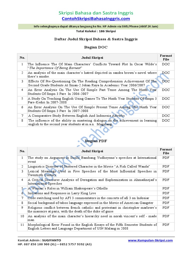 Contoh skripsi sastra inggris tentang film. Ini akan sangat memudahkan dalam menyusun skripsi. 1 the influence the of main characters conflicts toward plot in oscar wildes the importance of being earnest. Salah satu momok yang paling di takuti oleh setiap mahasiswa adalah ketika harus menyusun skripsi. 77 contoh judul skripsi pendidikan bahasa inggris terbaru dan terlengkap hai sahabat sbi yang super kali ini admin akan berbagi daftar judul skripsi pendidikan bahasa inggris. Contoh introduction bab 1 skripsi bahasa inggris buat teman teman sbi yang sudah dihadapkan dengan skripsi kali ini admin akan membagikan contoh isi bab 1 skripsi bahasa inggris. 19 a discourse analysis on negative politeness strategy used in there is something about mary film.