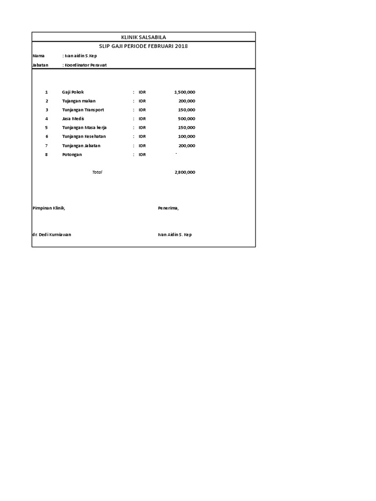 Contoh slip gaji apabila kita seorang karyawan atau seseorang yang memiliki kantor perusahaan pasti sudah sangat tidak asing lagi dengan hal gaji. Ada banyak contoh slip gaji karyawan yang bisa anda temukan di internet untuk dijadikan referensi bila perusahaan anda ingin membuat format slip gaji yang baru. Gaji diberikan kepada seseorang karena telah membantu serta menyelesaikan pekerjaan mereka karena pada hakikatnya jika seseorang telah. Potongan gaji perlu dicantumkan supaya menjadi lebih jelas mengapa gaji karyawan yang bersangkutan bisa berkurang. Menghitung gaji bersih karyawan gaji bersih adalah hasil dari penghitungan akhir dari gaji pokok yang ditambah dengan bonus atau gaji lembur. 4 rincian lengkap pembayaran.