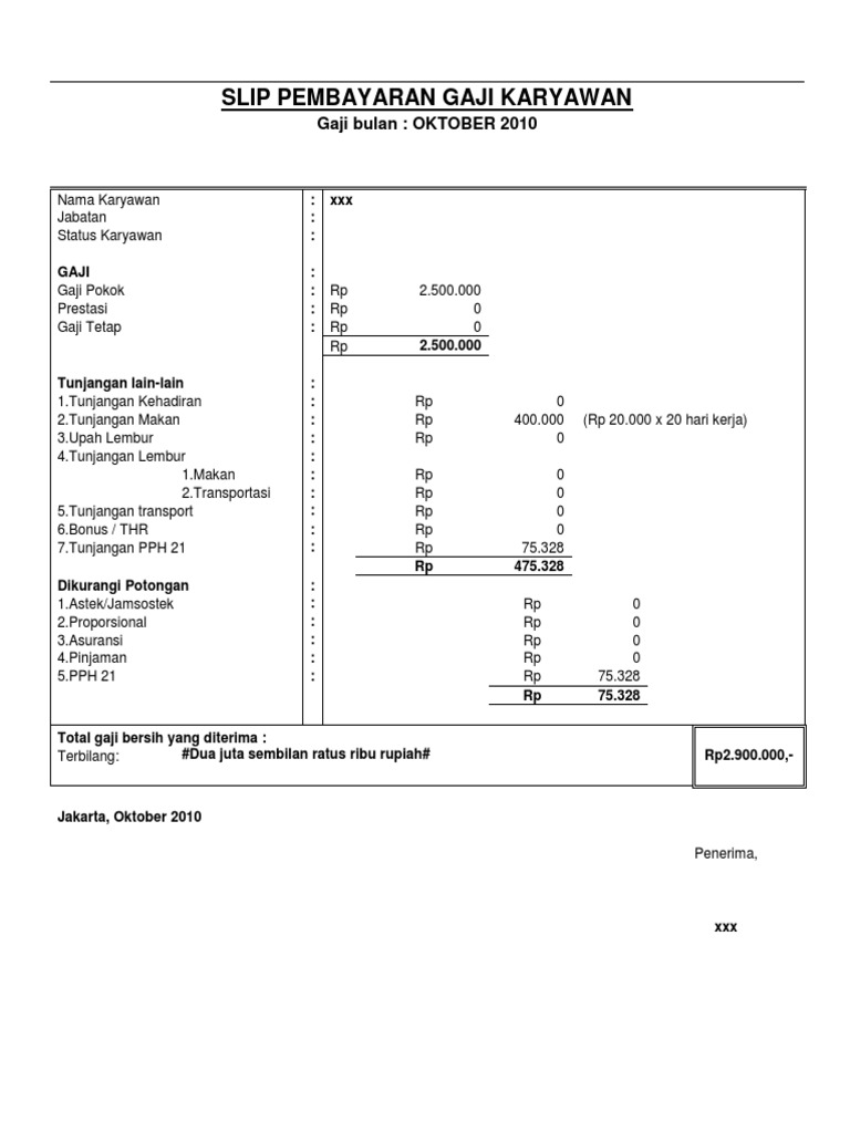 Jika anda berminat maka dapat download link di bawah ini. Dalam prakteknya tidak semata mata bantuan itu bersifat sukarela kenyataanya anda juga harus meng gajimemberi upah imbalan atas kerja keras mereka yang telah meluangkan waktu tenaga waktu untuk perusahaan. Walaupun setiap perusahaan hanya memiliki perbedaan slip gaji yang tidak terlalu signifikan. Slip gaji yang baik berisi rincian atau detail dari gaji karyawan tersebut. Secara teorinya kan sudah disampaikan tentang komponen yang harus dimuat dalam slip gaji karyawan. Bagi kebanyakan karyawan tanggal tua termasuk momok yang lumayan menakutkan.