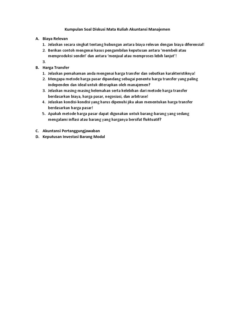 Akuntansi pertanggungjawaban berbeda dengan akuntansi konvensional dalam hal cara operasi direncanakan dan cara data akuntansi diklasifikasikan serta diakumulasikan. Sistem akuntansi pertanggungjawaban tradisional adalah suatu sistem akuntansi yang disusun sedemikian rupa sehingga pengumpulan dan pelaporan biaya dan atau pendapatan dilakukan sesuai dengan pusat pertanggungjawaban dalam organisasi dengan tujuan agar dapat ditunjuk orang atau kelompok orang yang bertanggung jawab atas penyimpangan biaya dan atau pendapatan yang dianggarkan. Sedangkan akuntansi pertanggungjawaban menurut lm samryn 2001. Contoh file download soal uts semester 1 kelas iv dan v sd mapel bindonesia ipa ips matematika pai dan pkn berikut ini adalah kumpulan dari berbagi sumber tentang contoh soal akuntansi pertanggungjawaban yang bisa gunakan untuk administrasigoogle drivesoal uts sd dan diunduh secara gratis dengan menekan tombol download biru. Akuntansi pertanggungjawaban merupakan suatu sistem akuntansi yang digunakan untuk mengukur kinerja setiap pusat pertanggungjawaban sesuai dengan informasi yang dibutuhkan manajer untuk mengoperasikan pusat pertanggungjawaban mereka sebagai bagian dari sistem pengendalian manajemen. Maka kuliah akuntansi manajemen bab akuntansi pertanggungjawaban.