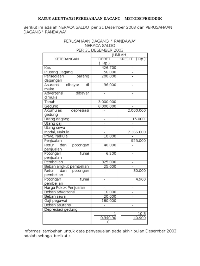 Contoh soal akuntansi perusahaan dagang. Contoh soal dan jawaban akuntansi perusahaan dagang transaksi yang terjadi pada perusahaan dagang maju bersama selama bulan oktober 2000 sebagai berikut. Materi akuntansi perusahaan dagang. Namun terlebih dahulu kita buat dulu contoh soal akuntansi yang akan di gunakan. Secara umum perusahaan dagang merupakan perusahaan yang aktivitas utamanya membeli menyimpan dan menjual kembali barang dagang tanpa memberikan nilai tambah terhadapnya. Contoh soal akuntansi perusahaan dagang beserta jawabannya memudahkan para pemula untuk memahami tentang transaksi yang terjadi di perusahan dagang yang kegiatan utamanya menjual kembali barang. Contoh soal akuntansi perusahaan dagangberikut ini kita akan mencoba untuk membuat sebuah siklus akuntansi perusahaan dagang.