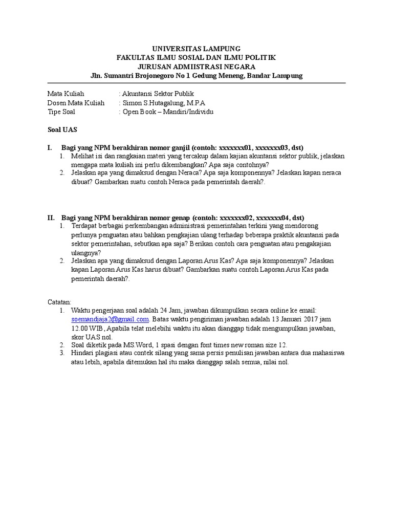 Untuk soal nomor 1 sampai dengan 60 pilihlah satu jawaban yang pali. Contoh soal dan jawaban jurnal akuntansi sektor publik pdf. Cara membuat laporan keuangan sektor publik yang tidak hanya tentang perhitungan transaksi tetapi juga penerapannya sesuai dasar dasar akuntansi secara nyata oleh pemerintah sehingga meminimalisasi kemungkinan terjadinya korupsi. Hal terwujudnya akuntansi sektor publik di karenakan adanya sebuah tuntutan akuntabilitas publik seperti dalam system penyusunan anggaran sektor publik yang di tuntut adanya transparansi dan. Akuntansi sektor publik eksi4207 petunjuk.