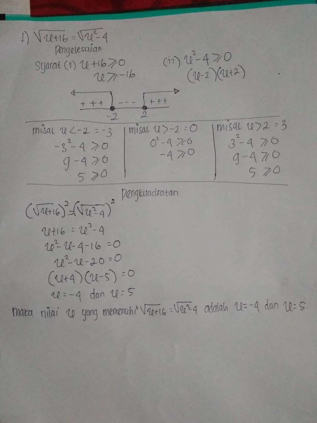 Di mana batasan dari bilangan rasional adalah mulai dari selanga. Tulis terlebih dahulu pembuat nol pada garis bilangan dan tentukan tanda untuk tiap tiap interval pada garis bilangan.
