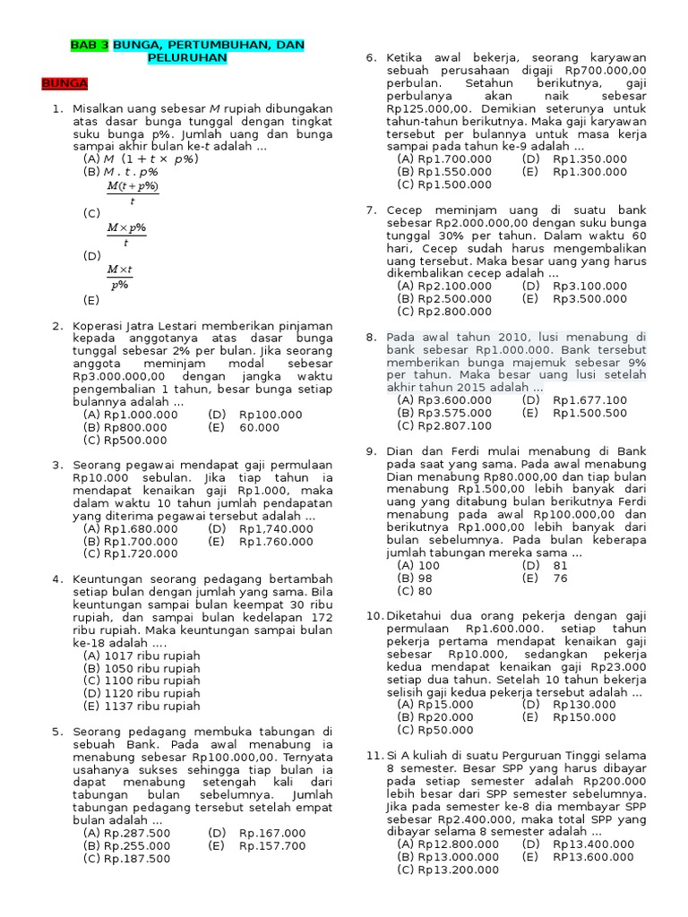 Contoh soal bunga tunggal dan bunga majemuk. Bunga majemuk merupakan bunga yang menjadi pokok dari suatu simpanan. Modal sebesar rp1000000000 dipinjamkan dengan bunga majemuk 2 per tahun. Bunga dalam 5 tahun. Seorang anak menginvestasikan uang sebesar rp. Istilah yang sering digunakan adalah bunga berbunga. Contoh soal bunga majemuk.