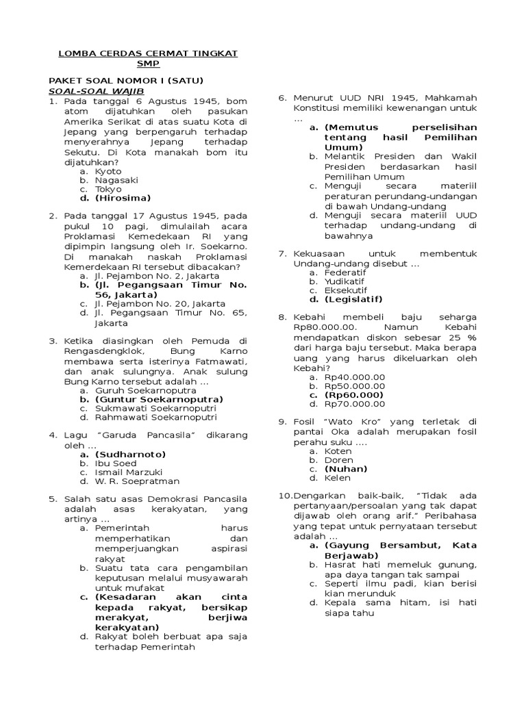 Contoh soal cerdas cermat tingkat smp. Kumpulan soal soal sd smp sma. Contoh soal cerdas cermat tingkat mts. Soal cerdas cermat pengetahuan umum ini adalah salah satu hal yang wajib kamu tahu dimana admin blog soal kunci jawaban menyampaikan soal cerdas cermat pengetahuan umum kepada teman teman semua yang saat ini mencari soal cerdas cermat pengetahuan umum dengan ini maka kamu akan tahu selengkapnya pembahasan soal cerdas cermat pengetahuan umum tersebut. Yang bisa digunakan untuk melengkapi administarsi guru yang dapat di unduh secara gratis dengan menekan tombol download. Soal cerdas cermat smp ini adalah salah satu hal yang wajib kamu tahu dimana admin blog soal kunci jawaban menyampaikan soal cerdas cermat smp kepada teman teman semua yang saat ini mencari soal cerdas cermat smp dengan ini maka kamu akan tahu selengkapnya pembahasan soal cerdas cermat smp tersebut. Soal lomba cerdas cermat agama islam untuk smptsanawiyah di bawah ini adalah beberapa contoh soal untuk kegiatan cerdas cermat khusus anak smp contoh soa.
