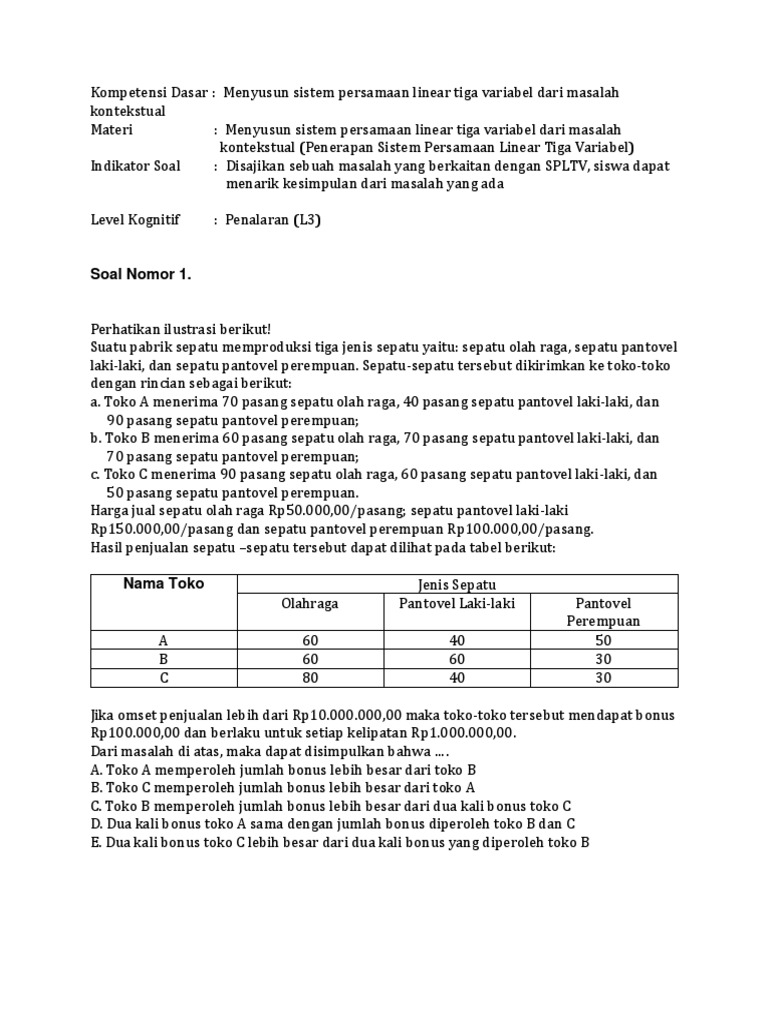 Contoh Soal Cerita Dan Jawaban Spltv