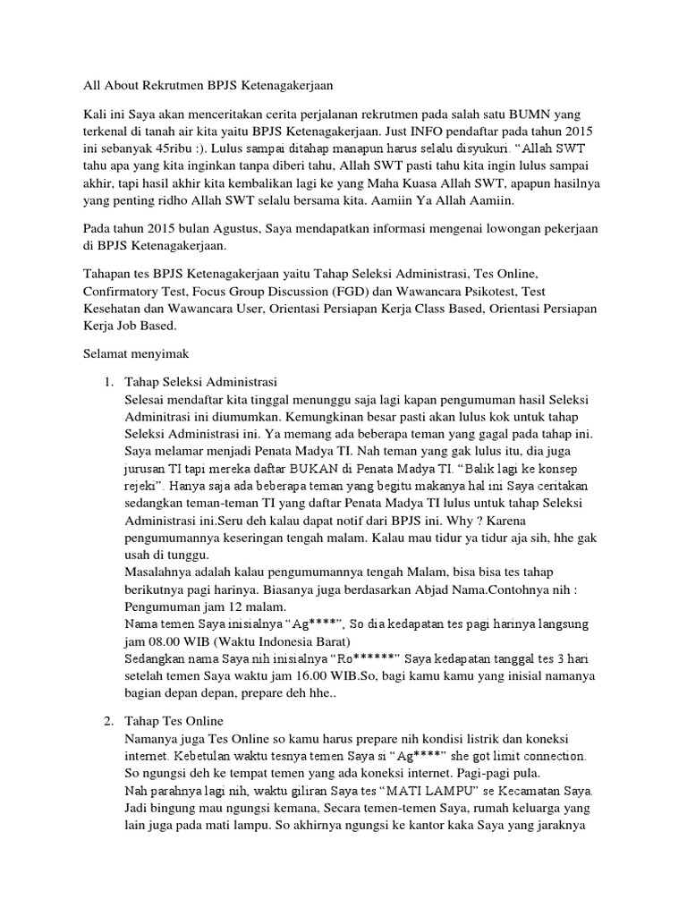 Kebetulan saya mengambil lokasi tes di luar kota mungkin saya butuh gambaran terkait waktu persiapan keberangkatan. Contoh soal latihan psikotes bpjs ketenagakerjaan dan kesehatan.