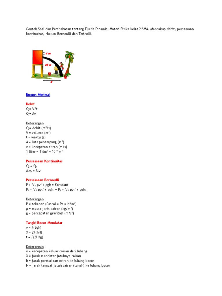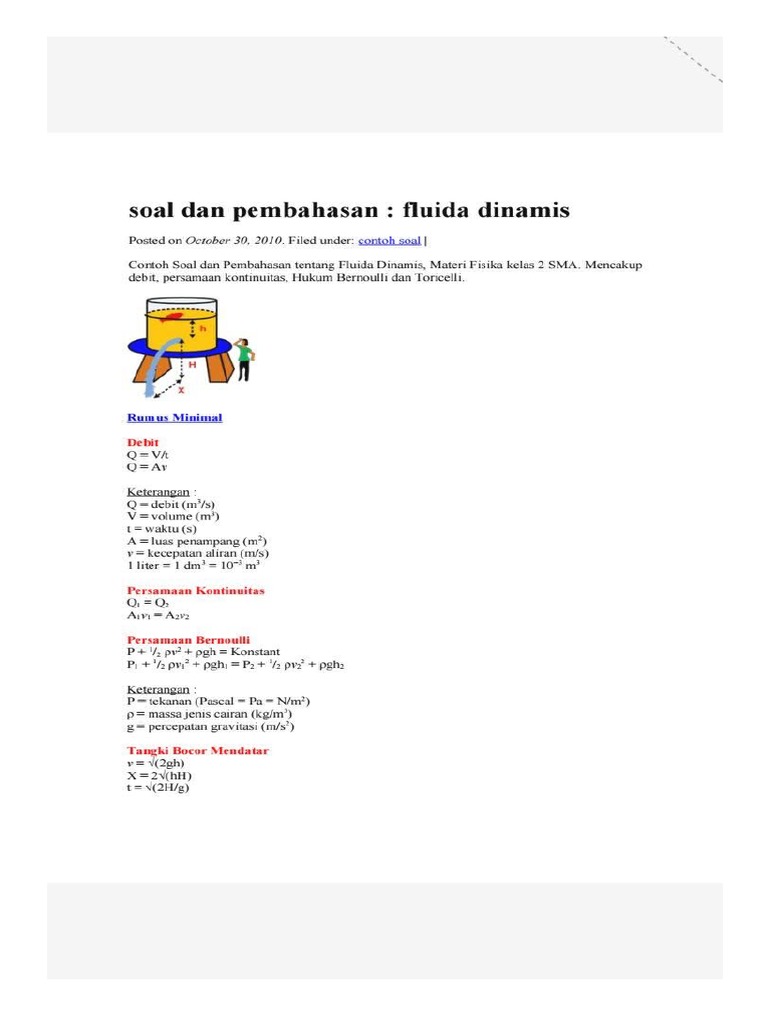Contoh soal dan pembahasan fluida dinamis. Download rangkuman contoh soal fluida dinamis dalam bentuk pdf klik disini. Gas yang keluar dari ujung selang itu mendorong sebuah balok yang diletakkan pada lantai yang licin. Soal dan pembahasan fluida dinamis. Mencakup debit persamaan kontinuitas hukum bernoulli dan toricelli dan gaya angkat pada sayap pesawat. Contoh soal dan pembahasan tentang fluida dinamis materi fisika kelas 2 smamencakup debit persamaan kontinuitas hukum bernoulli dan toricelli dan gaya angkat pada sayap pesawat. Contoh soal dan pembahasan.
