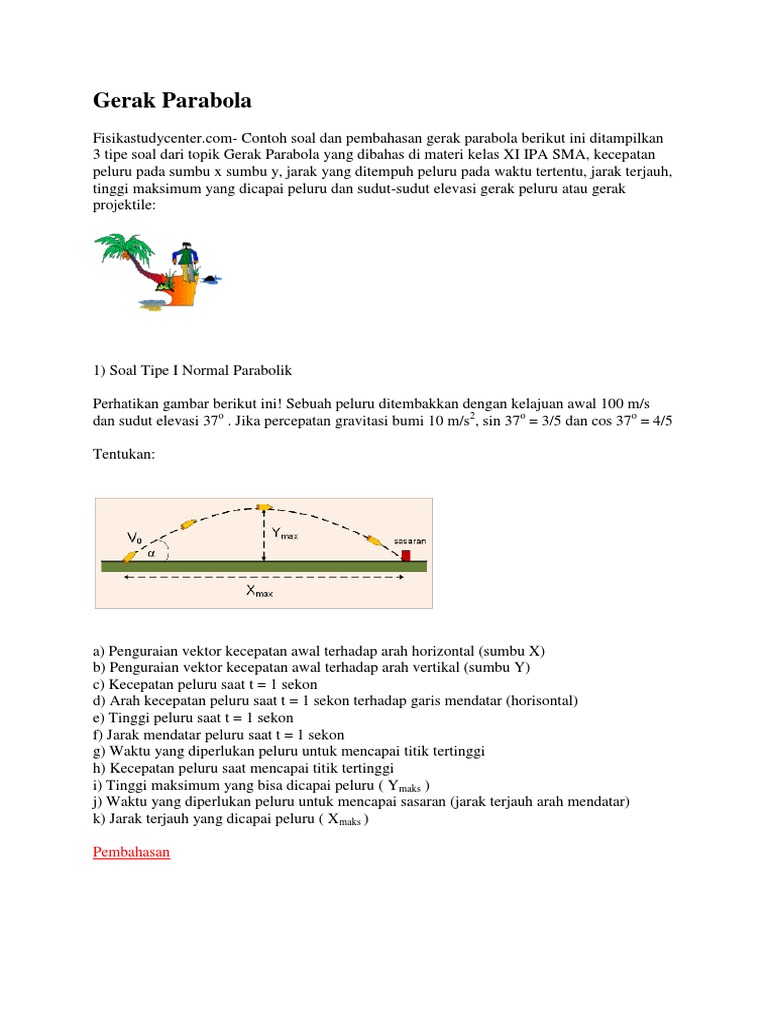 Contoh soal dan pembahasan gerak parabola. Contoh soal fisika dan pembahasan tentang persamaan gerak lurus dan gerak melingkar by mas min posted on april 19 2016 december 18 2018 sebelum memulai mengerjakan soal dibawah ini bainya pembaca sudah memahami maeri tentang persamaan gerak lurus dan gerak melingkar. Pengertian contoh dan rumus gerak parabola latihan soal gerak parabola dan pembahsan 1. Kumpulan soal dan pebahasannya tentang gerak parabola fisika oktober 31 2016 soal gerak parabola beserta pembahasan. Sekarang untuk memantapkan pengetahuan kita tentang materi persamaan parabola marilah kita menyimak contoh contoh soal beserta pembahasannya. Irfan menembakkan peluru dengan kecepatan awal 120 ms membentuk sudut elevasi 30 terhadap permukaan tanah. Persamaan parabola beserta rumus rumusnya sudah kita bahas pada artikel saya terdahulu.