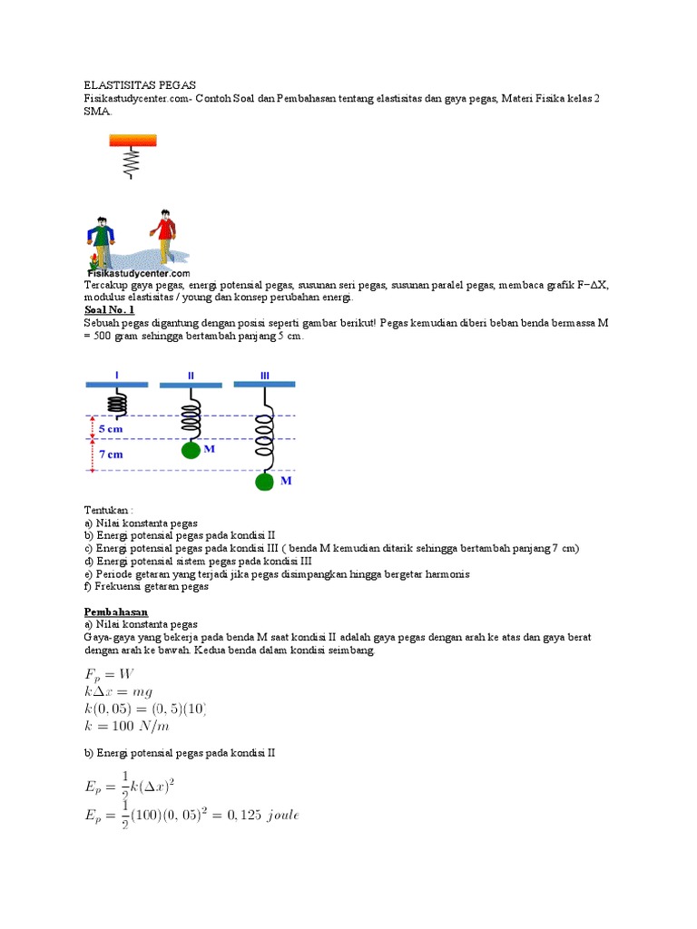 Diketahui sebuah pegas dengan panjang 5 cm tergantung tanpa beban. Contoh soal energi potensial. Energi potensial mempunyai beberapa bentuk diantaranya yaitu. Sebuah pegas memiliki konstanta pegas 400nm.