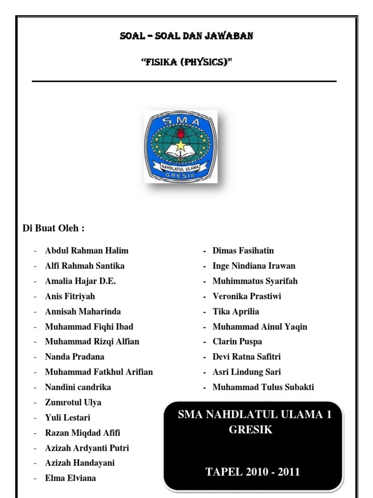 Berdasarkan hasil hasil yang telah diperoleh peserta indonesia dalam mengikuti olimpiade internasional serta tingkat kesukaran soal yang dilombakandiolimpiadekan dalam olimpiade tersebut perlu dilakukan penjaringan siswa unggul dan berbakat pembinaan yang lebih intensif khususnya siswa smpmts kelas ix smama kelas x dan xi mulai dari tingkat sekolah kabupatenkota provinsi sampai. Contoh soal terdiri dari soal tentang satuan dimensi besaran pokok dan besaran turunan.