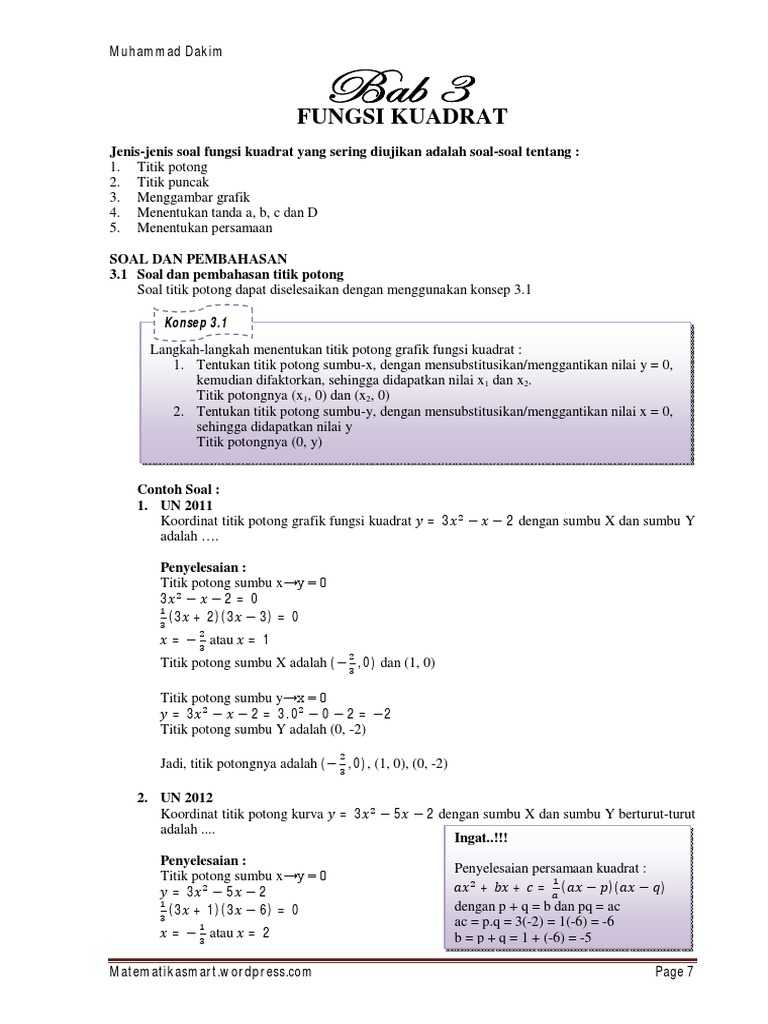 Grafik Fungsi Kuadrat Materi Lengkap Matematika