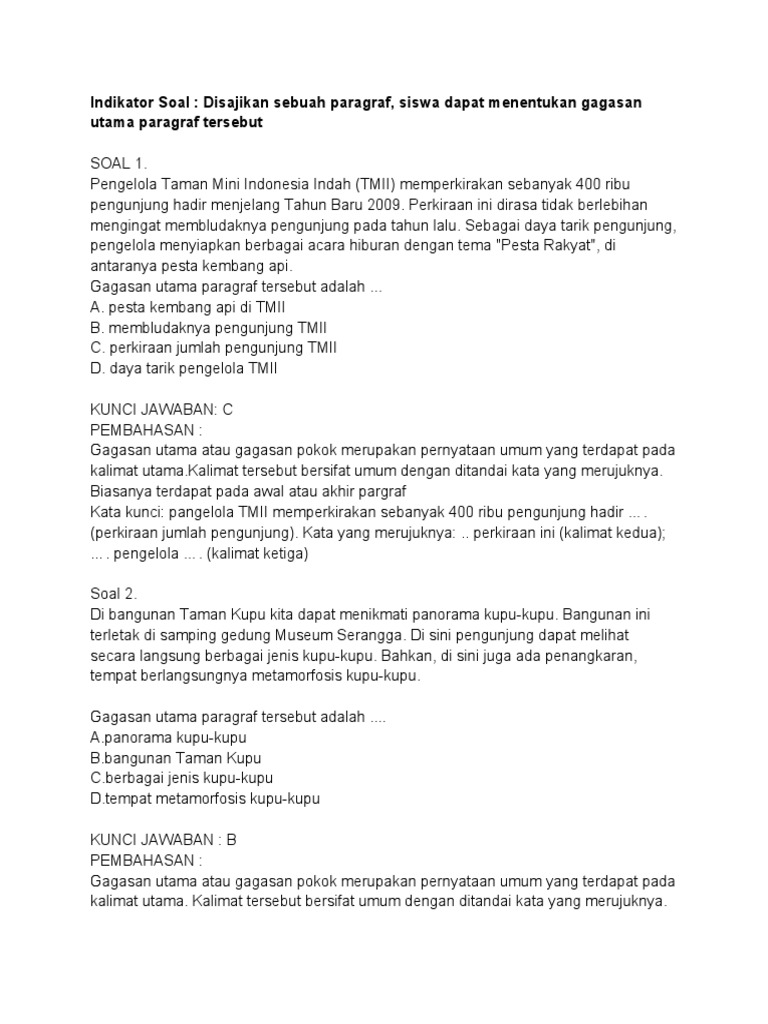 Selalu berhemat energi materi. Kalian dapat mengetahui gagasan utama sebuah bacaan apabila kalian telah membaca sebuah wacana secara utuh. Jika sobat sering sering berlatih maka tidak menutup kemungkinan sobat akan menjadi ahli atau pintar. Contoh gagasan utama dan contoh gagasan penjelas silahkan baca bacaan dibawah ini. Soal soal bahasa indonesia menentukan gagasan p okok jasa pembuatan administrasi bpbk di sekolah dan ptkbk hubungi kami di 081222940. Oleh karena itu kami coba berikan beberapa contoh soal tentang menentukan gagasan utama.