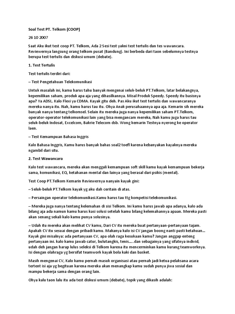 Contoh soal general cognitive ability test telkom. Dalam proses tahap 1 ini pelemar diujikan beberapa materi tes antara lain general cognitive ability test durasi tes 90 menit english ability test durasi tes 105 menit knowledge telkom way assessment durasi tes 90. Reviewernya langsung orang telkom pusat bandung. Sebaiknya kamu bisa menyiapkan waktu luang untuk tes beberapa hari kedepan. Saat aku ikut test coop pt. General cognitive ability test beriisi tentang matematika dasar bangun ruang dan pengolahan kata. Akan ada beberapa tes dalam beberapa hari kedepan.