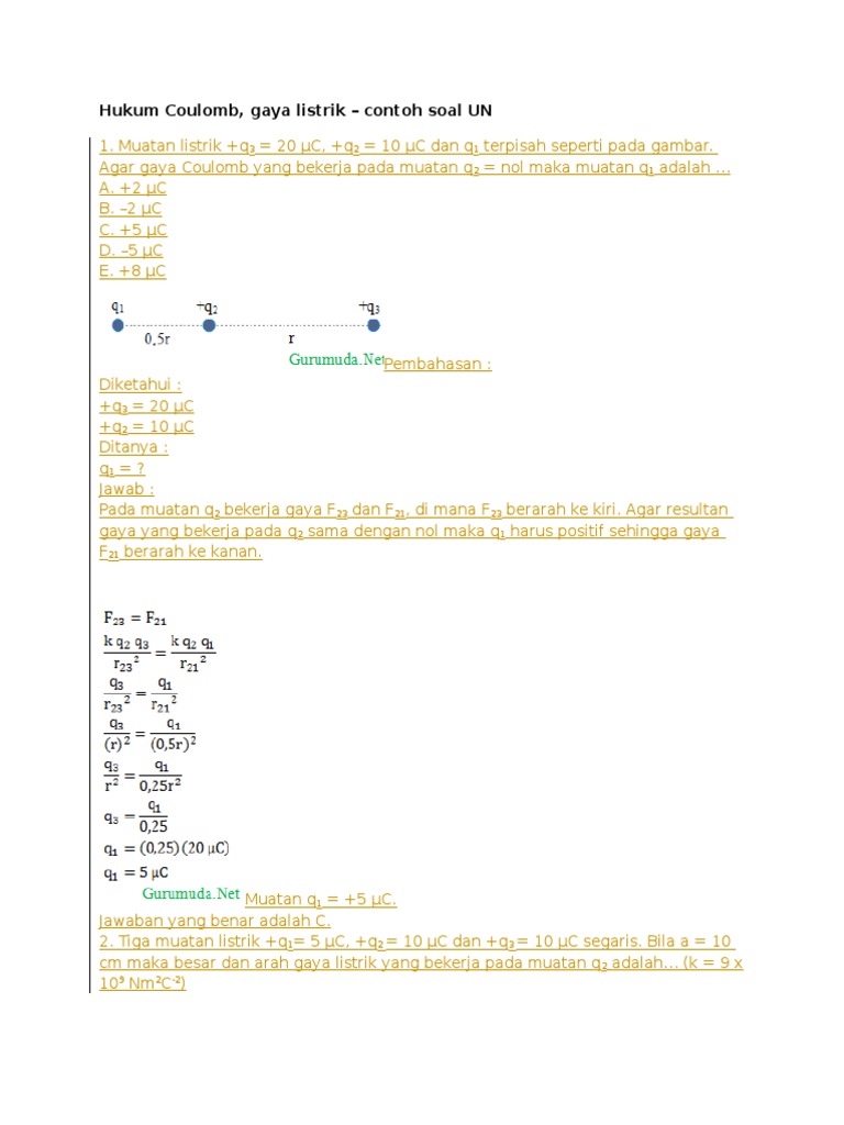 Bunyi hukum coulomb rumus contoh soal dan penyelesaiannya. Q1 3. Soal gaya coulomb no 1. Konstanta coulomb k 9 x. Hukum coulomb ditemukan oleh charles agustin de coulomb seorang fisikawan berkebangsaan perancis pada tahun 1785. Ilmuan dibidang fisika berkebangsaan perancis ini menemukan hukum yang dinamakan hukum coulomb.