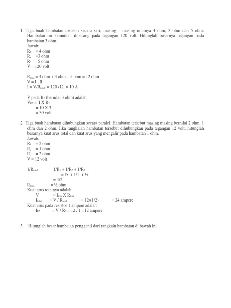 Dari contoh soal hukum ohm di atas ditemukan jawaban hasilnya yaitu 001 ampere atau 10 miliampere. Berikut ini terdapat beberapa contoh soal hukum ohm terdiri atas. Contoh soal hukum ohm. Hukum ohm ini ditemukan oleh george simon ohm. Hambatan ini kemudian dipasang pada tegangan 120 volt. Untuk lebih memahami penerapan hukum ohm akan saya contohkan beberapa soal dan juga pembahasan dibawah ini.