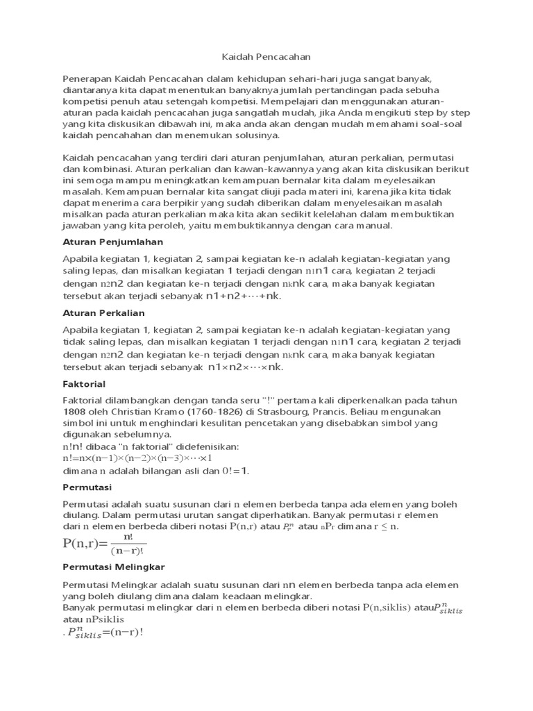 Kaidah Pencacahan Materi Permutasi Kombinasi Peluang Soal