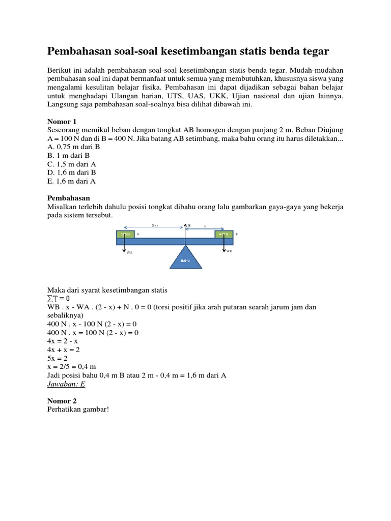 Fisika pembahasan soal. Biar ga bingung kamu juga bisa liat liat di daftar isinya yah. Unknown monday september 24 2018. Pada kondisi tersebut tecipta kesetimbangan benda tegar yang artinya total gaya yang bekerja pada benda 0. 10 soal dan jawaban kesetimbangan benda tegar fisika. 6 responses to soal dan pembahasan kesetimbangan benda tegar pupuk organik untuk kangkung darat tuesday may 15 2018.
