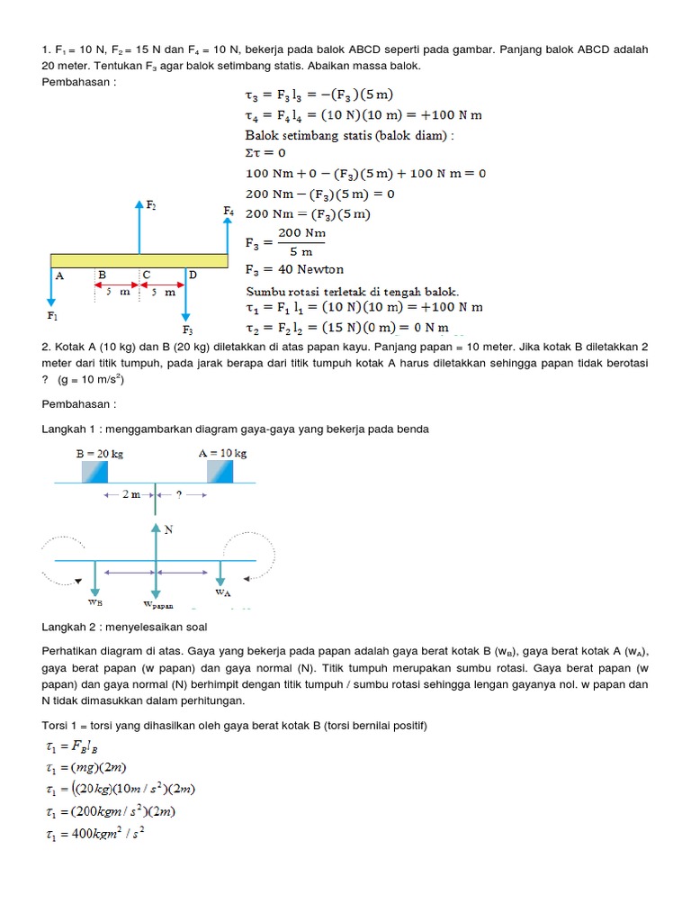 Soal Dinamika Benda Tegar Dan Pembahasannya Fokus Fisika