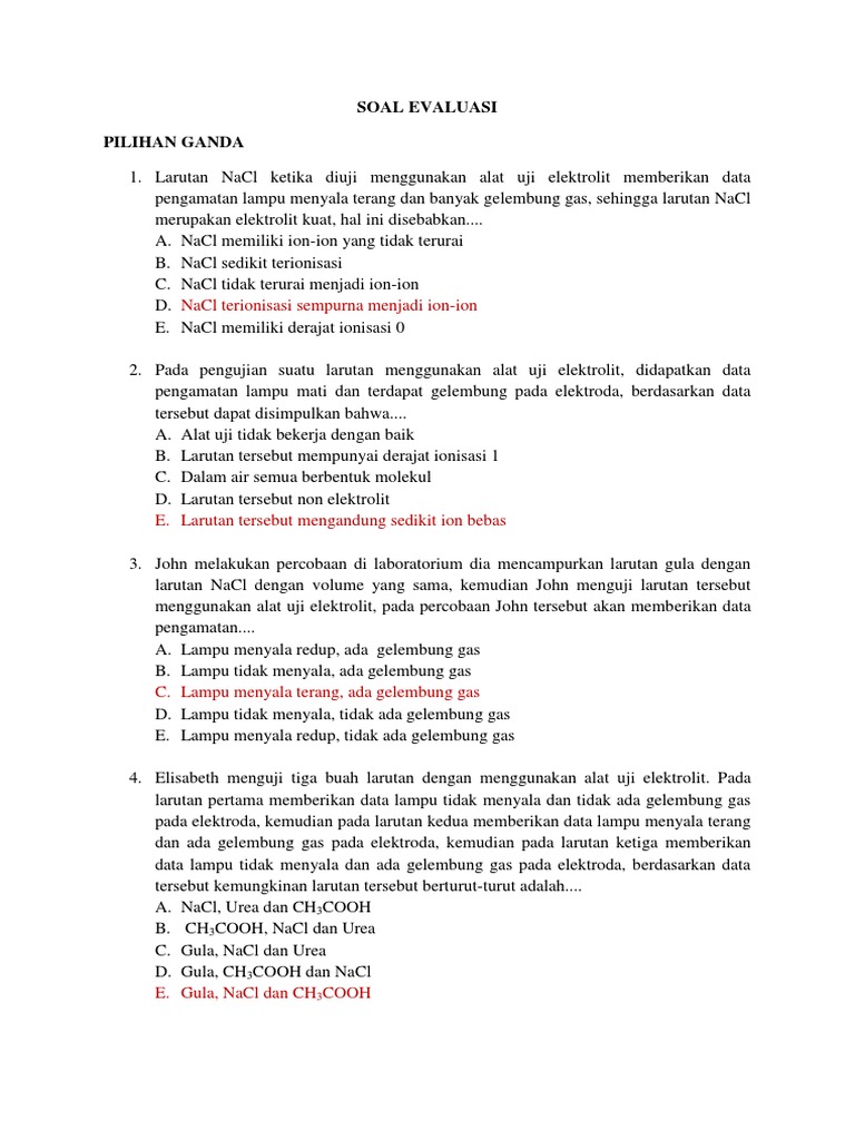 Contoh Soal Larutan Elektrolit Dan Non Elektrolit Serta