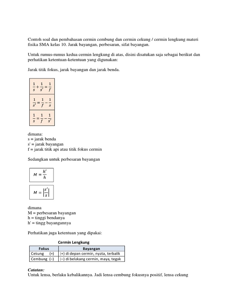Rumus Kekuatan Lensa Lensa Cembung Dan Cekung Beserta