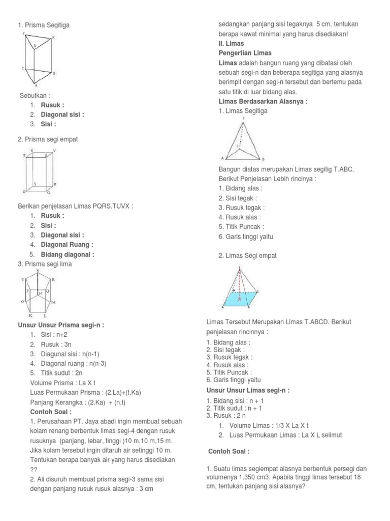Rumus Volume Dan Luas Permukaan Limas Idschool