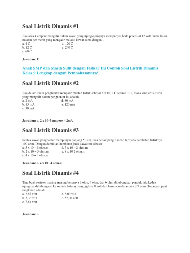 Oleh dosen pendidikan 2 diposting pada 02012020. Soal listrik dinamis 2.