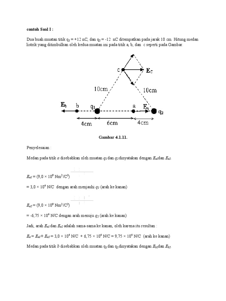 E 061510 5 c. Contoh soal medan listrik. Q 1510 5 c. Untuk menjawab soal ini kita ubah terlebih dahulu satuan muatan listrik dan jarak.