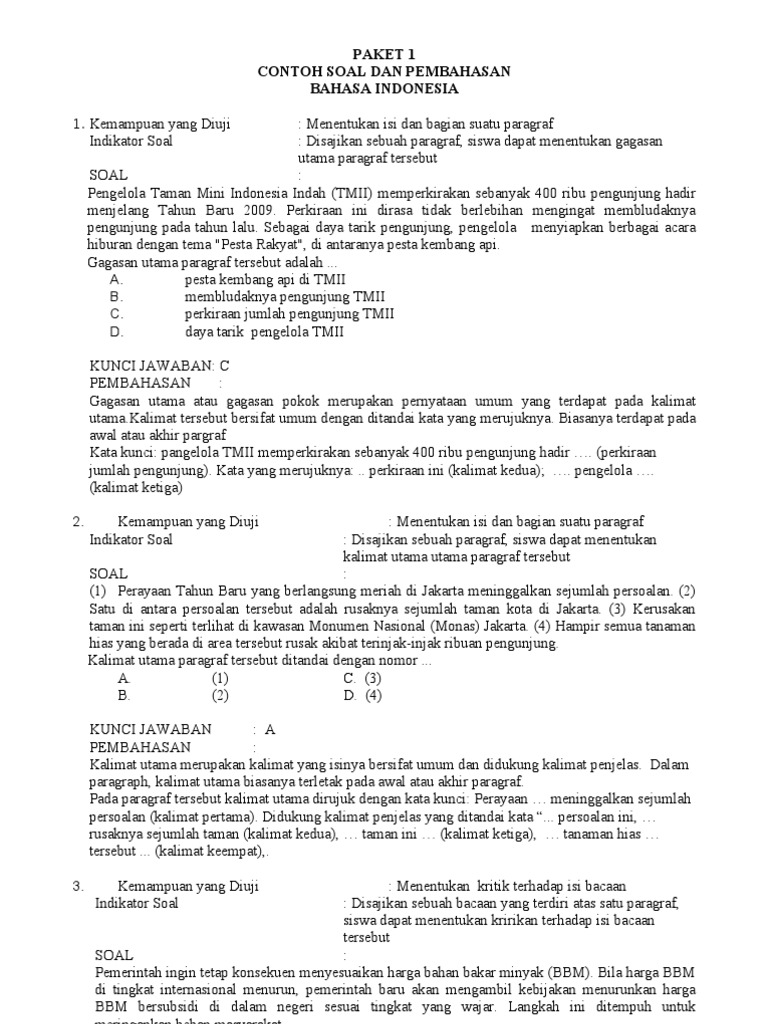 Pembahasan Soal Un 2016 2017 Bahasa Indonesia Ide Pokok