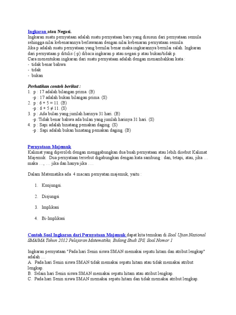 Rangkuman Contoh Soal Amp Pembahasan Logika Matematika