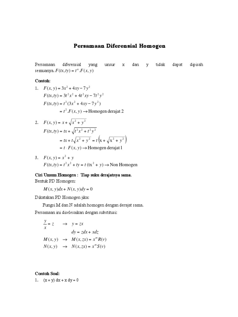 Contoh soal persamaan diferensial. Soal nomor 1 selesaikan persamaan diferensial berikut. Soal dan pembahasan persamaan diferensial tingkat dasar baca. Y 23 52 x 6 x 1 y 62 10x 1 y 1 213 512 1 6 2 5 1 6 2 1 2 y m 62 10x 1 612 101 1 5. Persamaan diferensial parsial dari persamaan linear dan kuasi orde pertama sampai materi persamaan laplace soal matematika pembahasan integral teknik pengintegralan1 kalkulus. Dalam sebagian besar penerapannya fungsi fungsi ini dipakai untuk menggambarkan besaran fisika sementara turunannya digunakan untuk menggambarkan laju perubahan sementara itu persamaan diferensial dipakai untuk mendefinisikan relasi di antara keduanya. Pengertian rumus dan contoh soal diferensial matematika.