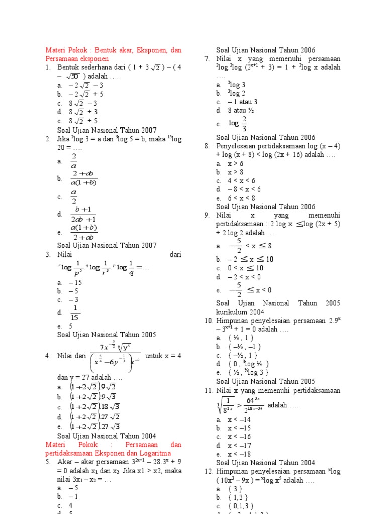 Contoh soal persamaan eksponen kelas 10. Tentukan nilai x dari persamaan 35x 1 27x3 0 jawab. Ke delapan sifat eksponen diatas harus kita pahami dan hafalkan karena sifat sifat eksponen tersebut adalah kunci untuk kita bisa mengerjakan soal soal eksponen. Squad dalam mempelajari matematika mungkin kamu sudah tidak asing lagi dengan cara menyelesaikan bentuk persamaan maupun pertidaksamaan ya. 35x 1 27x3 0 35x 1 33x3 35x 1 33x9 5x 1 3x 9 2x 10 x 5 contoh 7 soal. Fungsi eksponen dan grafiknya. Contoh soal dan pembahasan tentang eksponen sma contoh soal dan pembahasan tentang sifat eksponen sma contoh soal dan pembahasan tentang pertidaksamaan eksponen sma contoh soal dan pembahasan tentang persamaan eksponen sma.