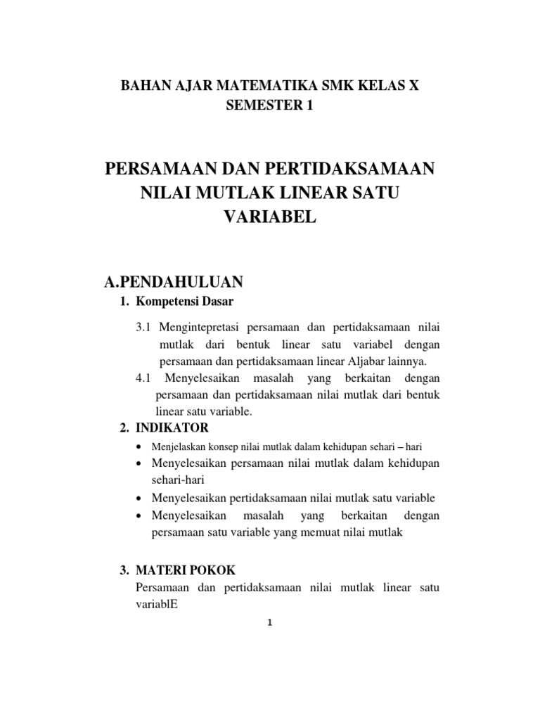 Cara dasar dalam mengoperasikan suatu bilangan dan variabel. Persamaan nilai mutlak linear satu variabel. Soal pertidaksamaan nilai mutlak.