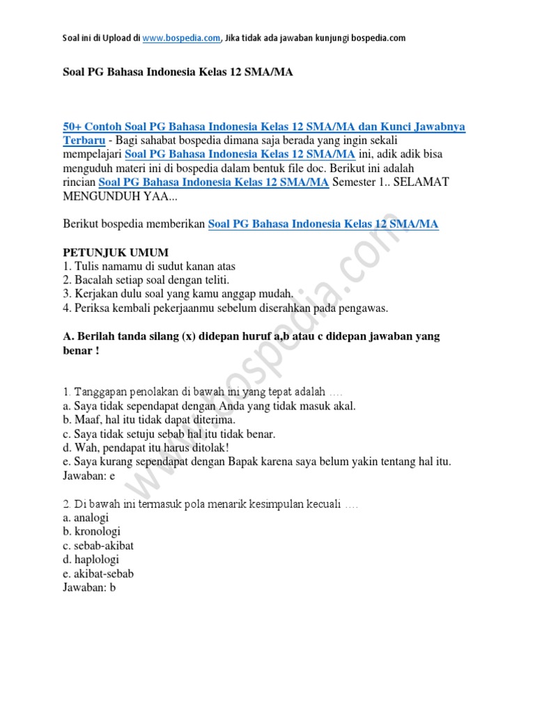 Berisikan materi yang sama dengan contoh soal essay bahasa indonesia kelas xi semester 1 dan jawabannya yaitu tentang sambutankhotbah artikelbuku dan paragraf deduktif dan induktif serta soal tentang menulis proposalsoal pilihan ganda bahasa indonesia tulisan ini diharapkan dapat membantu siswa kelas xi dalam menghadapi uji kompetensi ulangan harian miduts ujian sekolah dan sebagainya. Wali murid kelas vii smp negeri 345 jakartajalan merdeka 78jakarta pusatdengan hormatdalam rangka memperingati hut ke 25 smp jakarta kami mengadakan bakti sosial yang akandiselenggarakan padahari tanggal. Kisi kisi soal pts kelas ix kurikulum 2013 revisi kisi kisi soal pas kelas ix semester i ganjil kurikulum 2013 revisi a. 33 contoh soal teks tanggapan kritis pg beserta jawabannya. Demikian pidato saya dengan dengan ucapan terima kasih atas perhatian serta kesediaan bapak penyampaian pidato saya. Bagi anda yang ingin mengetahui contoh soal teks tanggapan kritis beserta jawabannya silahkan lihat link di bawah ini.