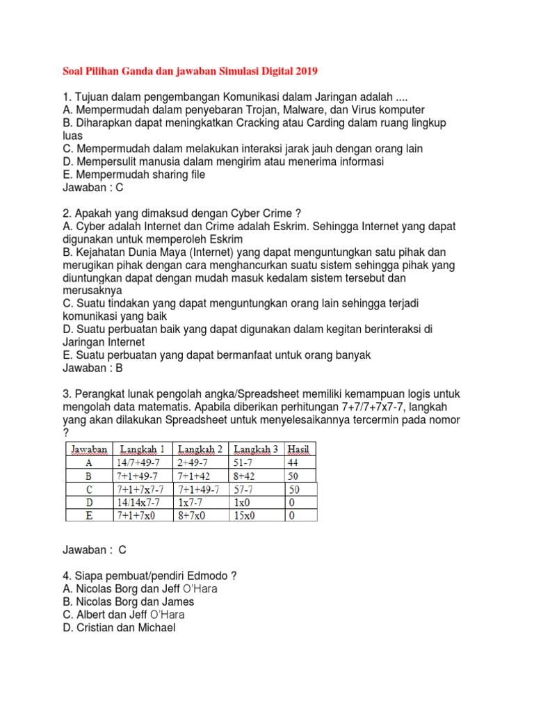 Contoh soal pilihan ganda simulasi digital dan jawabannya. Komentar dan user name 3. Video share b. E mail dan username d. Awal tahun 2007 d. Tahun berapa edmodo dikembangkan. Awal tahun 2007 d.