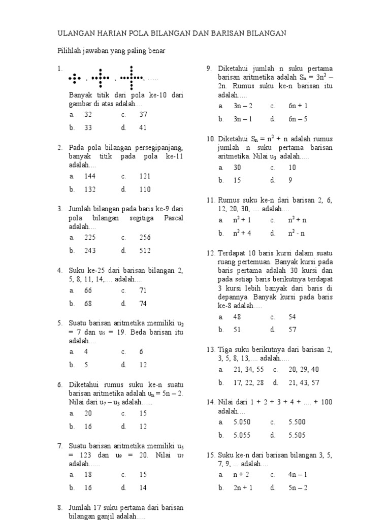 1 2 9 16 25. Contoh soal bilangan segitiga pascal. Belajar materi pola bilangan dan barisan bilangan mulai dari pengertian mengenal jenis pola bilangan rumus dan contoh soal latihan beserta pembahasan. Baca juga artikel lain pada. Posted in matematika tagged cara menggunakan segitiga pascal untuk himpunan contoh soal pola bilangan segitiga pascal dan jawabannya contoh soal segitiga pascal pangkat 2 rumus mencari jumlah bilangan pada segitiga pascal rumus segitiga pascal ke n rumus sn segitiga pascal segitiga pascal pangkat 6 segitiga pascal pdf. Contoh soal pola dan barisan bilangan ini disusun dalam bentuk pilihan berganda dilengkapi dengan pembahasan dan dirancang sedemikian berdasarkan beberapa subtopik yang paling sering dibahas dalam kajian pola dan barisan bilangan.