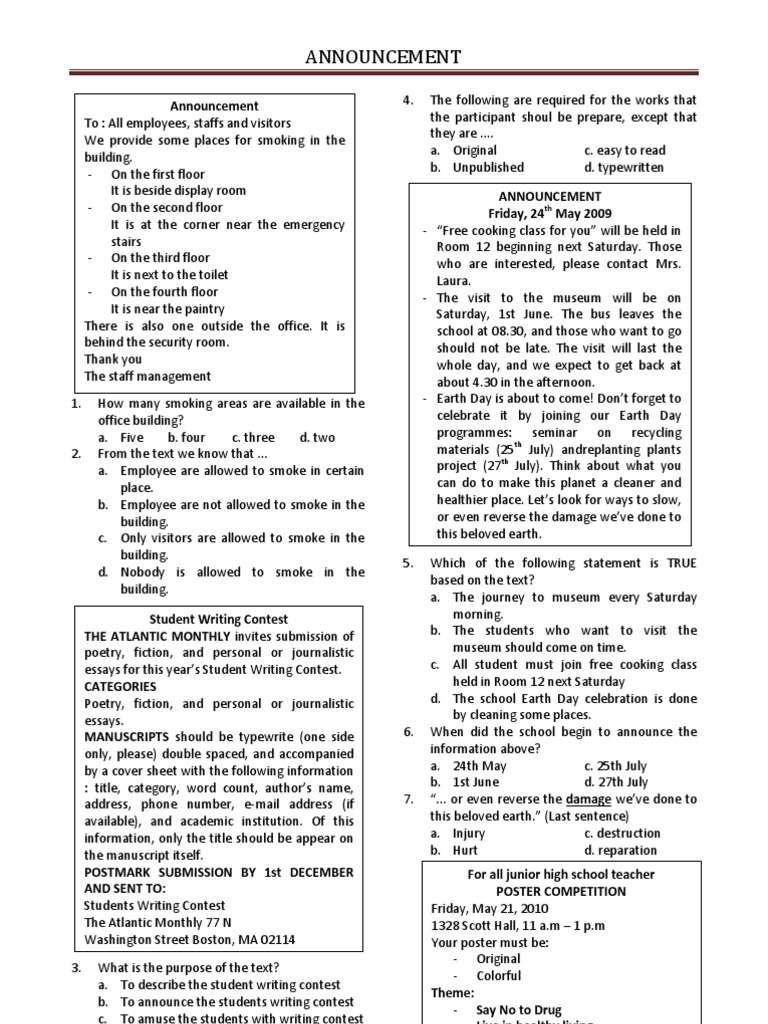 Poster menurut kbbi kamus besar bahasa indonesia adalah plakat yang dipasang di tempat umum berupa pengumuman atau iklan. Contoh soal essay poster contoh soal pilihan ganda menulis slogan dan poster soal pilihan ganda tentang iklan dan jawabannya dan contoh soal seni budaya tentang poster. Poster umumnya dipasang di tempat umum yang ramai seperti. Soal pilihan ganda bahasa indonesia teks eksplanasi dan jawabannya ada sekitar 50 butir soal pgpilihan ganda bahasa indonesia tentang teks eksplanasi kelas 811 dan jawabannya yang bisa adik adik smpsmasmkma jadikan referensi dalam menghadapi ujian dari guru. Teks bahasa inggris soal dan jawabannya ini bisa bertopik macam macam. Pasar terminal halte stasiun tempat wisata bandara dan lain lain.