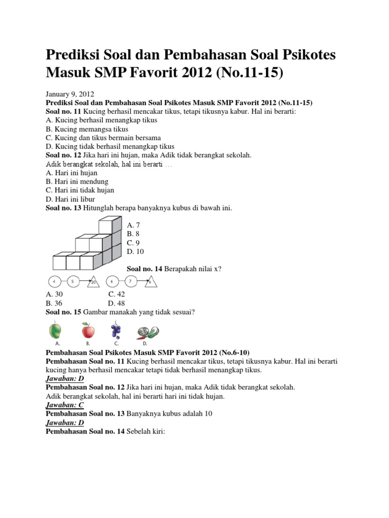 Tes psikotes masuk smasmk smp sd tahun 2018 terbagi dua ada yang diawal pendaftaran dan ada pula pada saat menentukan kelas unggulan. Contoh soal psikotes sma tahun 2020 terbagi dua ada yang diawal registrasi dan ada pula pada dikala menentukan kelas unggulan. Download contoh soal psikotes 2019 matematika gambar polri bank karayawan deret angka pdf cpns sma online dan jawabannya beserta pembahasannya lengkap. Contoh soal bagi siswa sd untuk tes masuk smp manfaat psikotes psikotes digunakan untuk mengukur kemampuan spesifik seseorang melalui persoalan dan kasus yang diberikan.