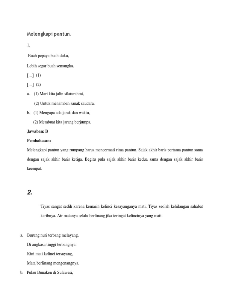 Berisikan materi tentang antologi puisi bagian ke 7 tulisan yang sedang anda baca merupakan lanjutan soal bahasa indonesia kelas x semester 2 kurikulum 2013 pilihan ganda wajib bagian ke 6 soal nomor 61 75. Demikian materi pada kesempatan kali ini yaitu penjelasan tentang contoh kisi kisi soal bahasa inggris sbmptn beserta kunci jawabannya. Nah demikianlah yang dapat kami bahas mengenai ulasan tentang contoh soal psikotes beserta jawabannya semoga artikel ini bisa memnambah wawasan dan dapat membantuk. Soal puisi bahasa indonesia dan jawabannya kumpulan model soal ujian nasional tentang puisikarya sastra m enurut wikipedia bahasa indonesia puisi a dalah seni tertulis di mana bahasa digunakan untuk kualitas estetiknya untuk tambahan atau selain arti semantiknya. Rumuscoid baiklah kali ini kita akan membahas materi yang sangat menarik yakni tentang prediksi soal unbk ujian nasional berbasis komputer smk 2020 beserta jawabannya kami akan jabarkan secara detail dan lengkap tentang prediksi soal unbk smk tahun 2020 beserta jawabannya. Bahasa cerpen ciri ciri teks contoh soal un dongeng drama fakta dan pendapat iklan imbuhan kalimat majemuk kamus karya ilmiah kelas ix kelas vii kelas viii kisi kisi un kurikulum 2013 majas materi sma materi soal un musikalisasi puisi novel pantun pidato poster prediksi un sastra siap ujian siap ujian sma sinopsis skkd sd skkd smasmkmamak.
