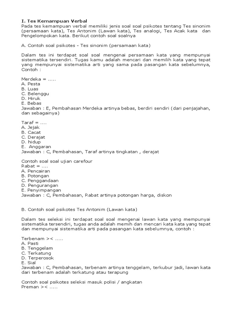 Exercise on synonym 1. 200 contoh soal cpns 2019 tes sinonim kata persamaan kata tujuan dari pelaksanaan tes persamaan kata atau soal sinonim ini adalah untuk menyeleksi peserta ujian penerimaan cpns yang memiliki kemampuan dan atau memiliki pengetahuan serta wawasan yang luas dalam hal tentang suku kata atau perbendaharaan kata sehingga nantinya diharapkan peserta yang lulus dan diterima sebagai pns mempunyai. Posting pada sd sma smp ditag 10 kata sinonim dalam bahasa bugis 1000 kata antonim 5 contoh antonim majemuk 50 kata sinonim 50 kata sinonim bahasa indonesia anonim adalah antonim menentukan antonim menonton antonim pulang contoh antonim contoh antonim mutlak contoh kalimat antonim contoh kalimat antonim sinonim hiponim contoh soal antonim dan sinonim contoh soal sinonim. Latihan soal psikotes sinonim antonim adalah untuk mengukur kemampuan verbal kamu mengenai persamaan dan lawan kata.