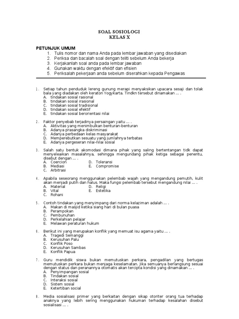 Contoh soal sosiologi kelas 10. Tidak hanya soal sosiologi saja lho kamu pun dapat mengakses semua koleksi buku soal sma berbagai mata pelajaran lain seperti soal un sosiologi fisika kimia ekonomi biologi ujian nasional prediksi soal ujian nasional sma sampai dengan kumpulan soal sbmptn soshum dan saintek terbaru. Soal sosiologi kelas 8. Selamat datang di blog kumpulansoaltest. Simak di sini untuk persiapan pelajaran sma kelas 10. Nah mungkin ini lah yang dapat kami sampaikan mengenai ulasan tentang contoh soal sosiologi kelas 10 semoga apa yang sudah kami berikan ini dapat berguna dan bermanfaat sekian dari kami. Dengan adanya soal soal latihan ini diharapkan membantu siswai dalam memudahkan proses belajar mengajar sebelum menghadapi ujian yang sesungguhnya.