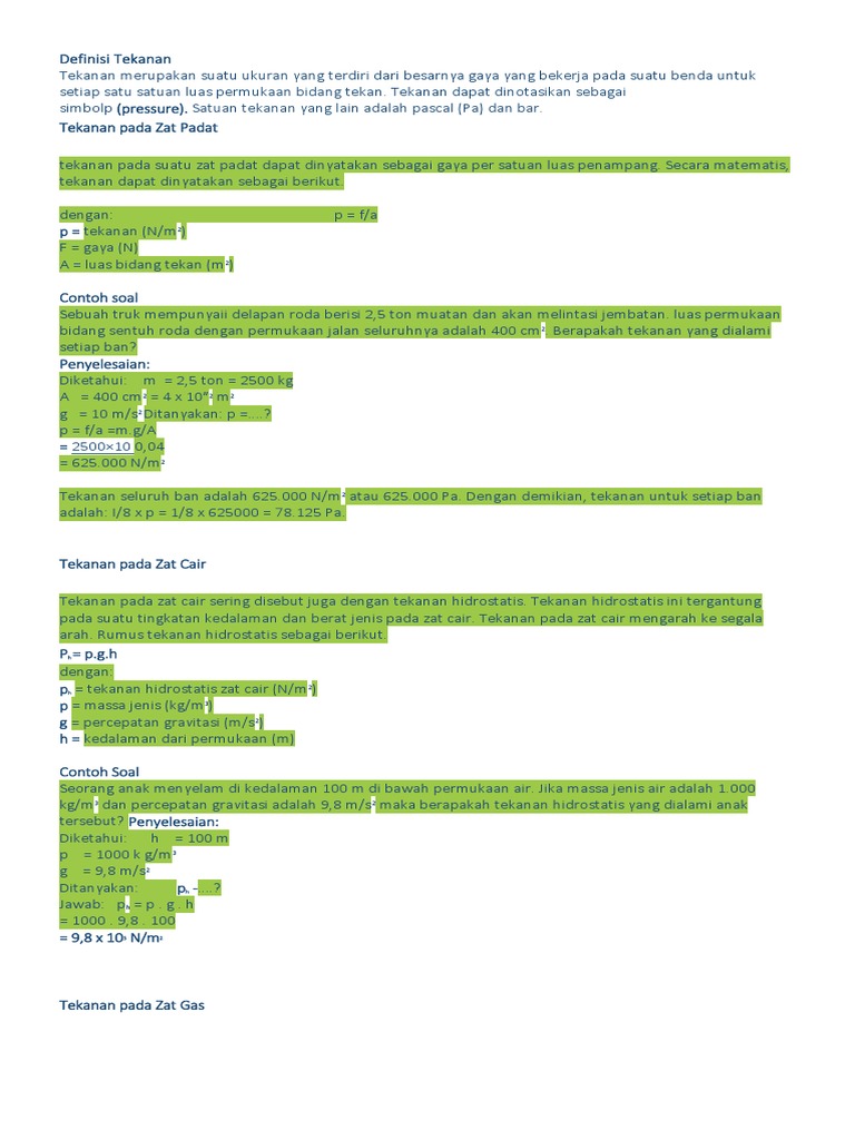 Contoh soal tekanan zat cair. Rumus tekanan hidrostatis. Hal utama yang mempengaruhi tekanan hidrostatis di suatu tempat diantaranya yaitu kedalaman massa jenis zat cair tersebut dan gaya gravitasi pada tempat tersebut. Kumpulan contoh soal dan pembahasan tentang tekanan bejana berhubungan dan hukum pascal untuk smp. Hidrostatis berasal dari kata hidro yang berarti air dan statis yang berarti tetap sehingga dapat diartikan jika tekanan hidrostatis adalah tekanan pada zat cair dalam keadaan diam. Contoh soal soal tekanan hidrostatis. Demikianlah latihan soal materi tekanan zat cair padat hukum pascal bejana hukum archimedes tekanan udara dan hukum boyle beserta pembahasannya jika sobat masih ingin melihat soal saol dengan materi yang lainya sobat bisa klik tulisan contoh soal di menu atas jika sobat ingin membaca penjelasan materi yang lainya sobat bisa klik tulisan materi di menu atas.