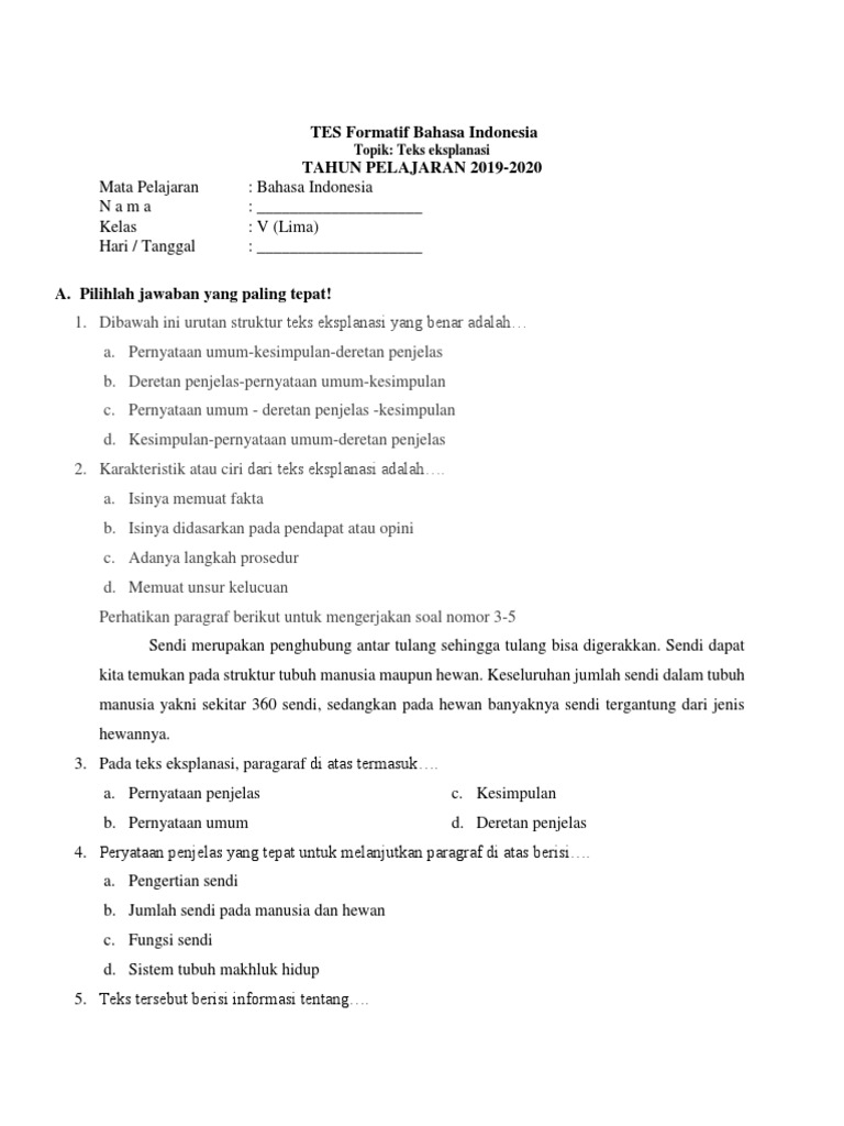 Contoh soal teks eksplanasi. Soal teks eksplanasi jawabannya terbaru pilihlah jawaban yang benar diantara pilihan jawaban a b c d e dengan memilih salah satu diantaranya. Contoh teks eksplanasi setelah kita mengetahui masing masing penjelasan mengenai berbagai teks diartikel sebelumnya. Contoh teks eksplanasi tentang bencana alam tanah longsor longsor adalah sebuah peristiwa dimana terjadinya gerakan tanah atau biasa disebut geologi yang terjadi karena adanya pergerakan masa batuan atau tanah dengan berbagai tipe dan jenis seperti jatuhnya bebatuan atau gumpalan besar tanah. Untuk lebih memahaminya disini kita akan memberikan beberapa contoh agar anda tidak keliru serta dapat membedakannya terhadap jenis teks yang lainnya. Berikut ini terdapat beberapa contoh teks eksplanasi antara lain sebagai berikut. Arus urbanisasi yang kian meningkat perlu mendapat perhatian yang serius dari.