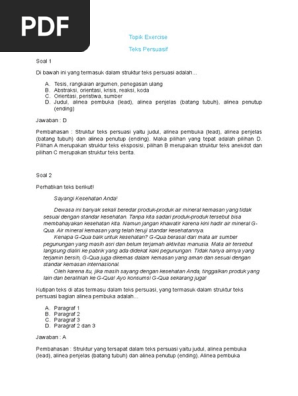 Contoh soal teks persuasi dan jawabannya. Jawablah pertanyaan pertanyaan berikut dengan memilih a b c atau d. Di artikel ini hanya tersedia beberapa soal latihan dan jawaban saja jika ingin mendownload soal latihan teks persuasi secara lengkap bisa menggunakan link di akhir artikel ini. Persuasi saat ini bangsa kita tengah menghadapi persoalan yang sangat serius yaitu menurunnya moral di kalangan remaja. Pembahasan soal un bahasa indonesia sma 2012. Pada kesempatan kali ini kakak ingin membagikan kumpulan soal soal pilihan ganda bahasa indonesia tentang teks prosedur kelas 71112 dan kunci jawabannya. Kakak harap kalian semua sehat sehat selalu ya.