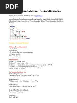 Hukum Termodinamika 1 Dan 2 Pengertian Rumus Contoh Soal